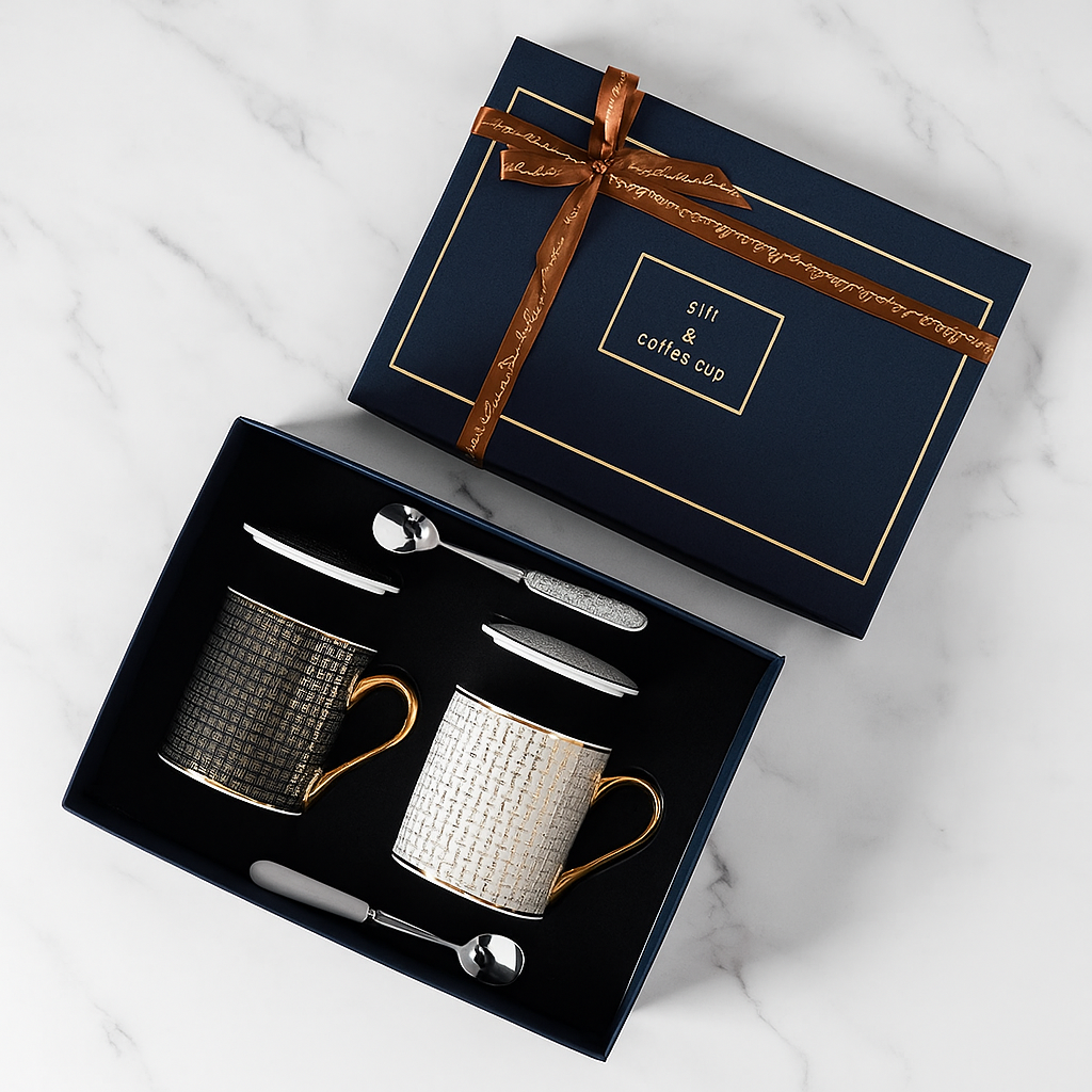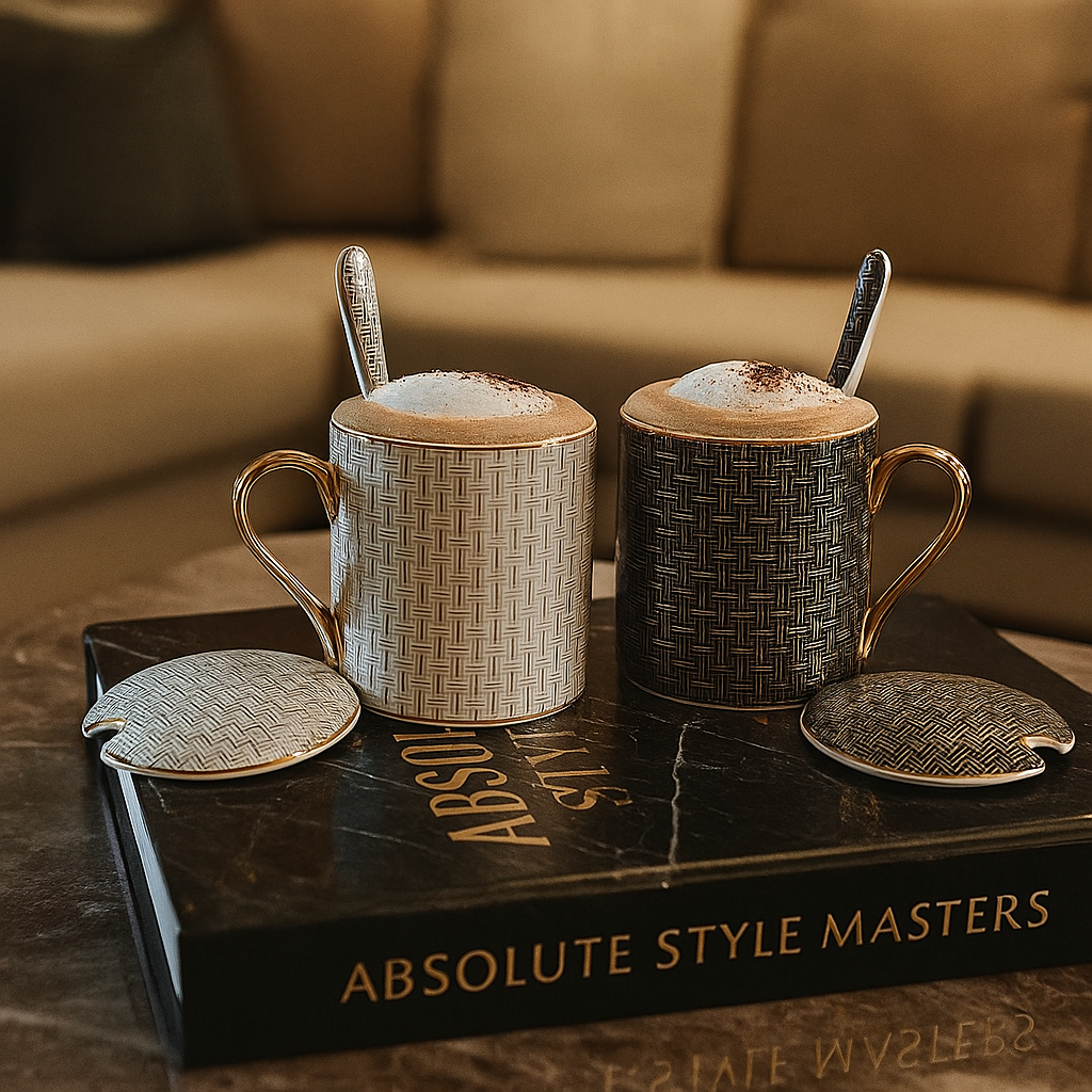 Geniet van je koffie, thee of warme chocolademelk in stijl met deze luxe mokken set. De mokken zijn gemaakt van hoogwaardig keramiek, hebben een opvallend patroon en een gouden oor voor een chique uitstraling. Dankzij de handige deksel blijft je drankje langer warm en de bijpassende lepel maakt het setje helemaal compleet. Perfect als cadeau of gewoon voor jezelf. Waarom jij deze mok wil hebben: